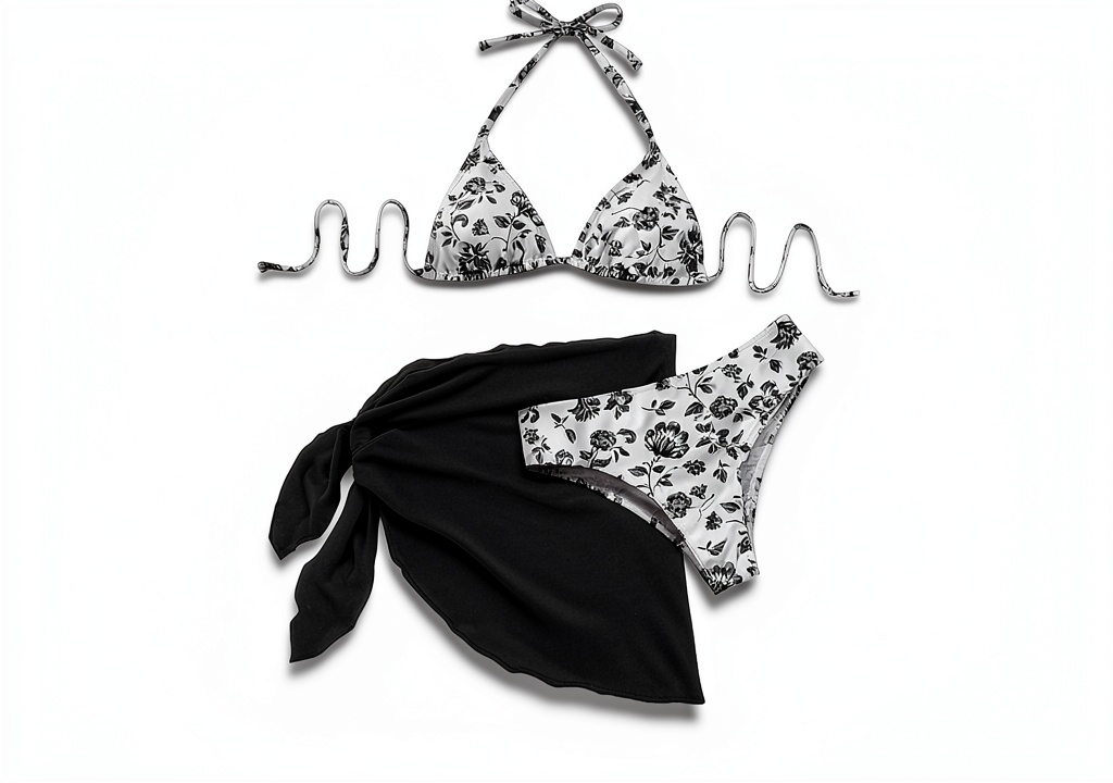 - Set de matching incluant haut triangle, bas et jupe portefeuille, parfait comme cadeau ou pour voyager.