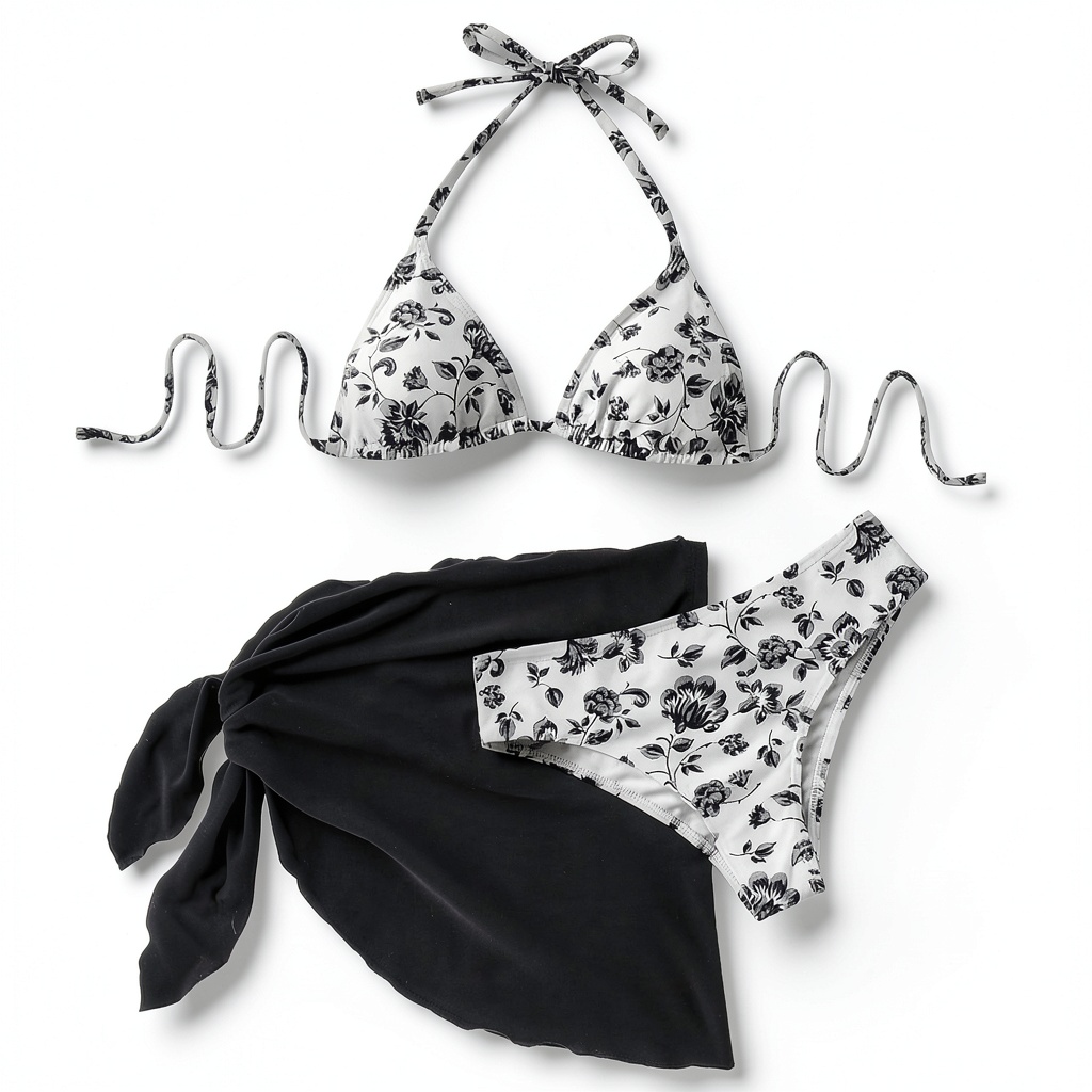 Le bikini 3 pièces MUNSKT pour femme combine un design floral élégant et une coupe dos-nu moderne pour un look féminin et actuel. Cet ensemble comprend un haut de bikini triangle, un bas de bikini et une jupe portefeuille assortie, idéal pour diverses occasions estivales. Fabriqué en tissu doux et extensible (80% polyamide, 20% élasthanne), il offre un stretch 4 directions, une respirabilité optimale et un séchage rapide. Les bretelles réglables et la ceinture élastique permettent un ajustement personnalisé, tandis que la jupe légère en mousseline flatte la silhouette et apporte une couverture supplémentaire. Disponible en tailles S, M, L, XL et coloris Noir et Bleu, ce bikini est conçu pour allier style, confort et praticité.