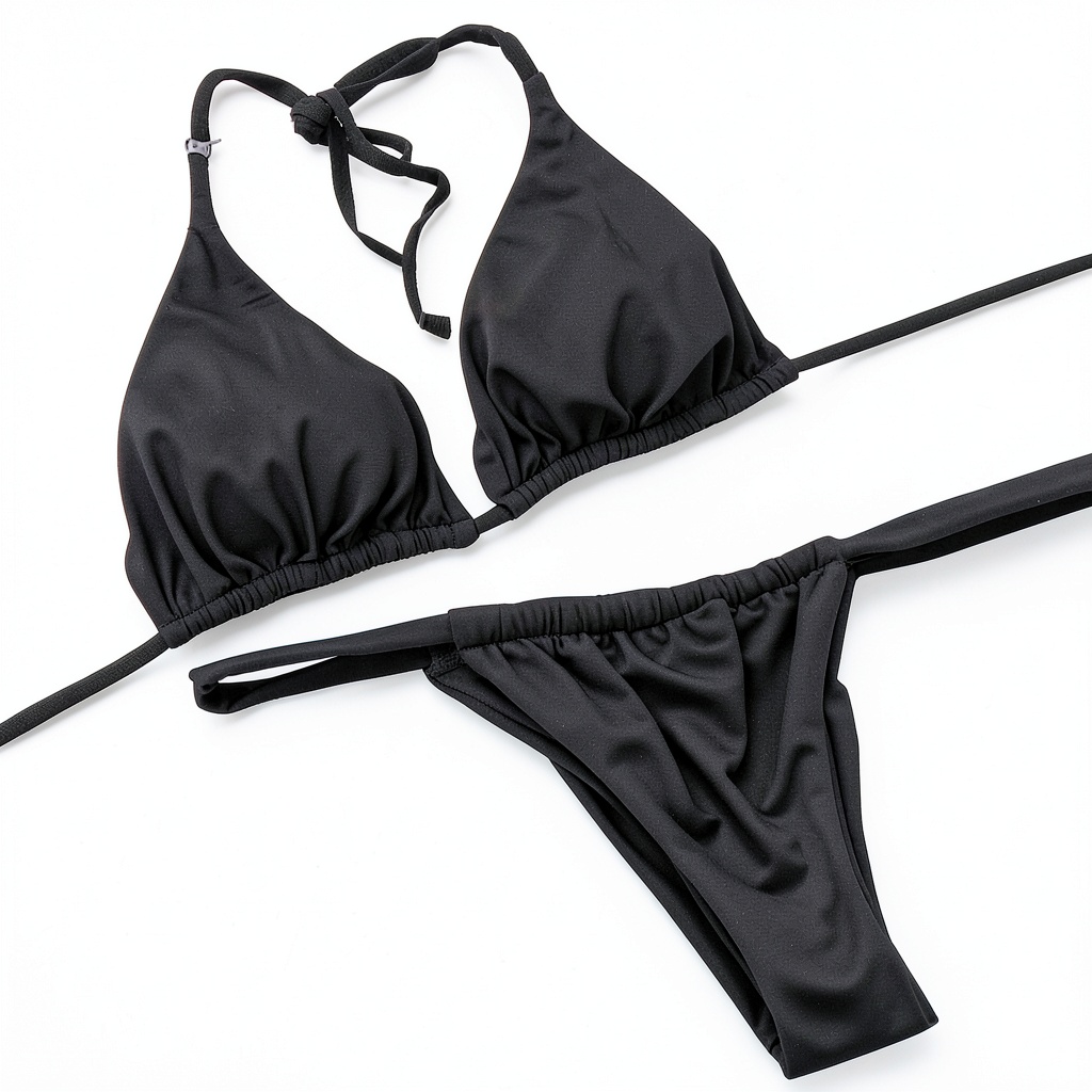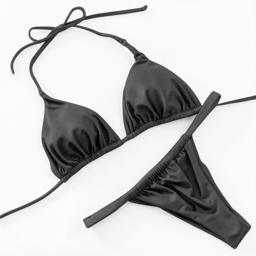 - Design deux pièces avec col en V et haut triangle pour une silhouette élégante