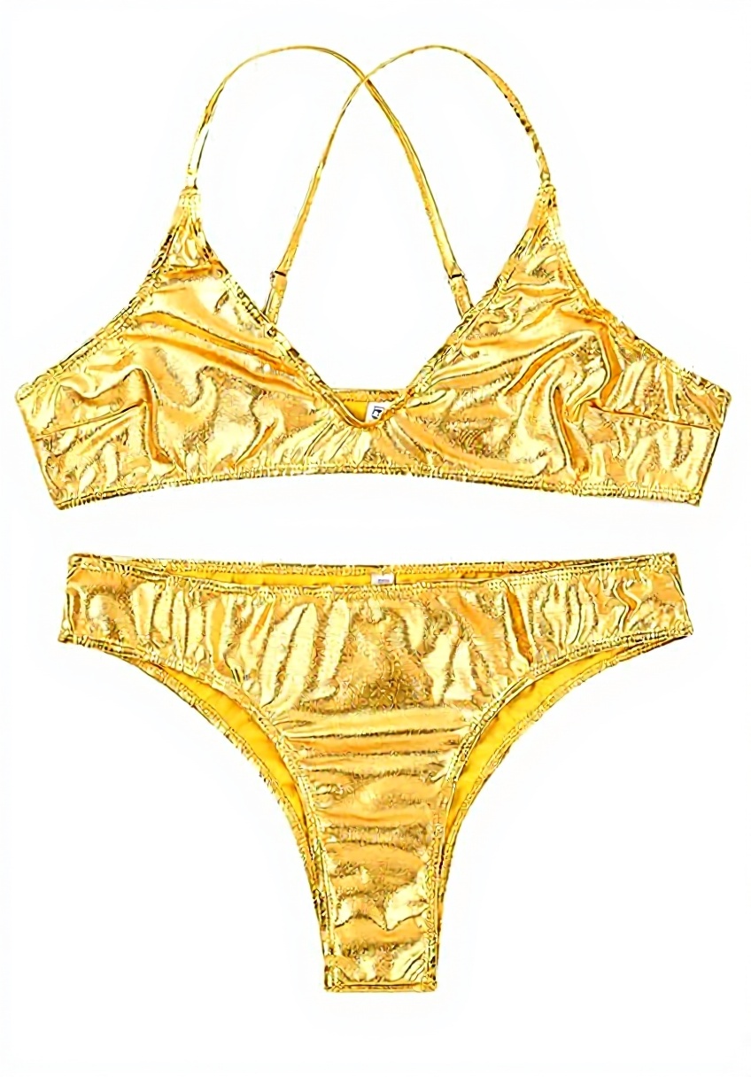 Ce bikini femme se distingue par son fini brillant métallique et son design aux bretelles croisées et dos haut. Fabriqué en nylon et polyester de haute qualité, il offre une élasticité optimale pour un ajustement parfait et un confort durable. Léger et résistant, il sèche rapidement et conserve sa forme même après de multiples utilisations. Disponible en tailles S, M, L, XL et en couleurs argent, or et noir, il s’adapte à toutes les morphologies.
