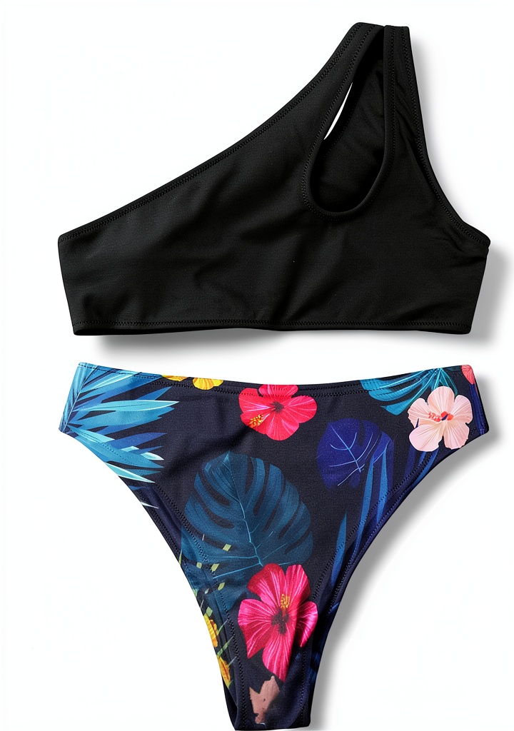 Le bikini 2 pièces JFAN allie style et confort avec son design une épaule et sa coupe taille haute. Fabriqué en polyester et spandex de qualité, il offre un maintien push-up et s’adapte à toutes les morphologies. Parfait pour la baignade, les loisirs aquatiques ou simplement bronzer au soleil, cet ensemble vous accompagnera lors de toutes vos activités estivales.
