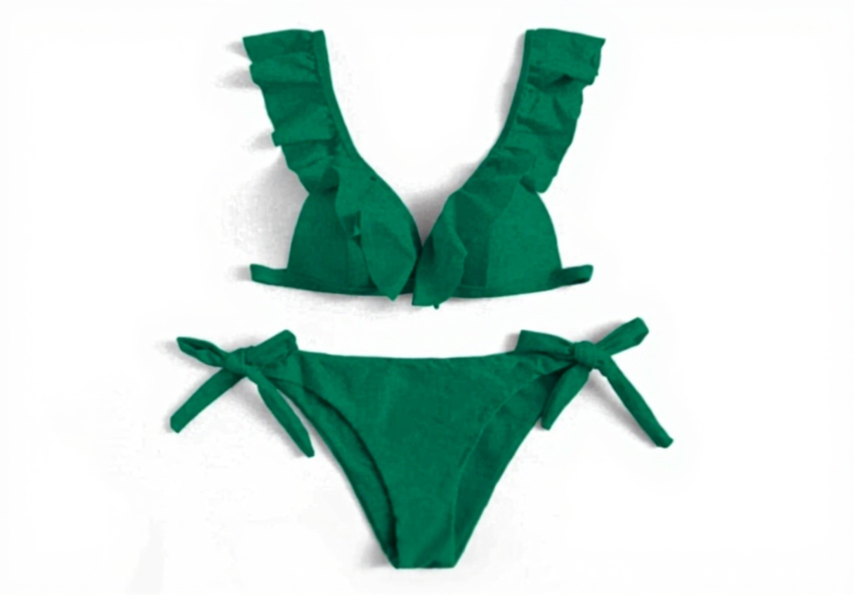 Ce maillot de bain deux pièces pour femmes allie élégance et fonctionnalité. Fabriqué en matériau élastique léger de haute qualité, il offre un excellent confort, une coupe près du corps et un séchage rapide. Le design inclut des volants délicats et des push-up pads pour sublimer votre silhouette. Disponible en tailles S, M, L, XL et en couleurs rouge, blanc, noir, rose et vert, il s’adapte à toutes les morphologies et préférences.