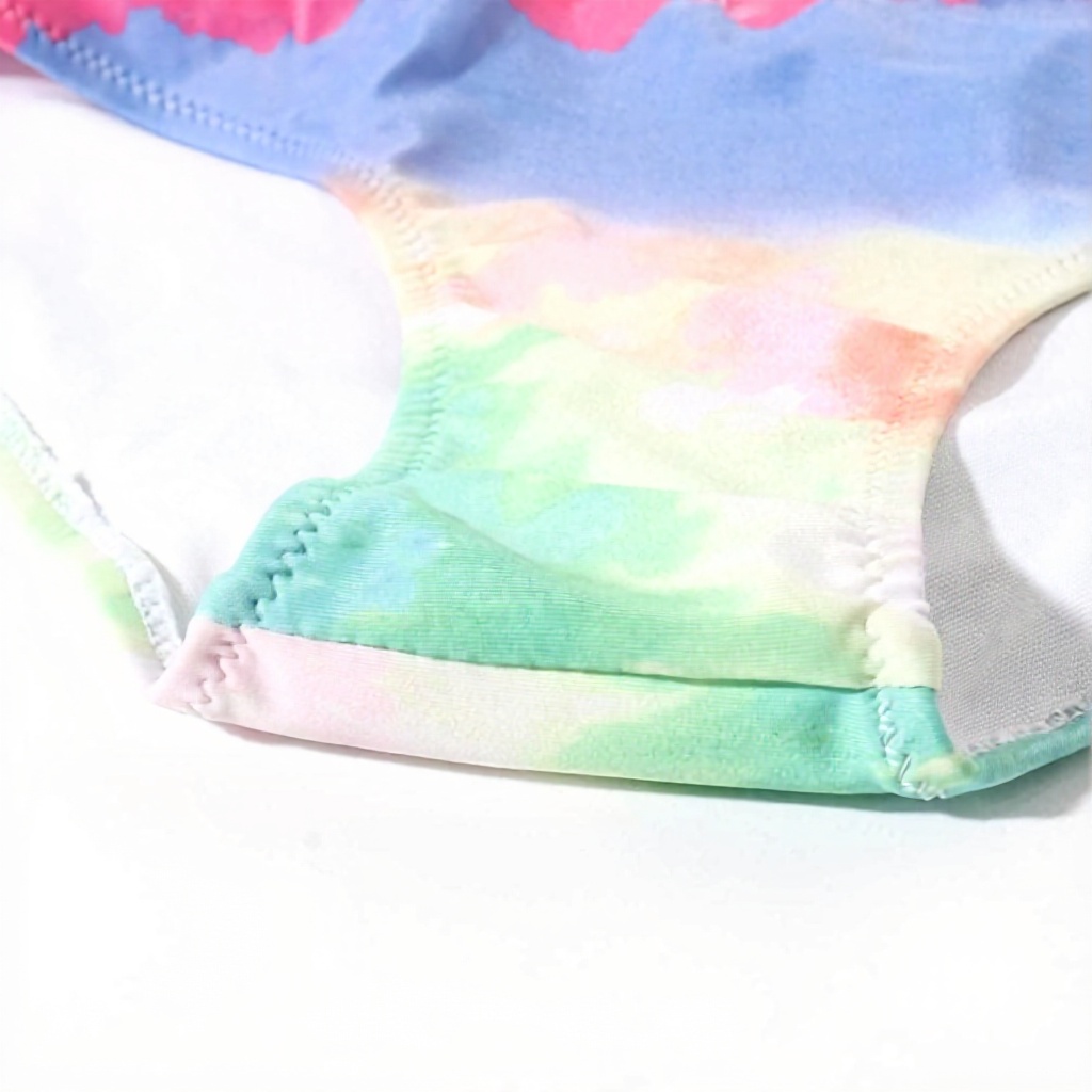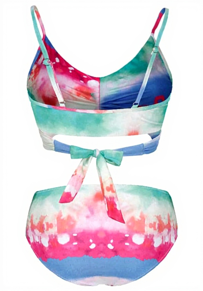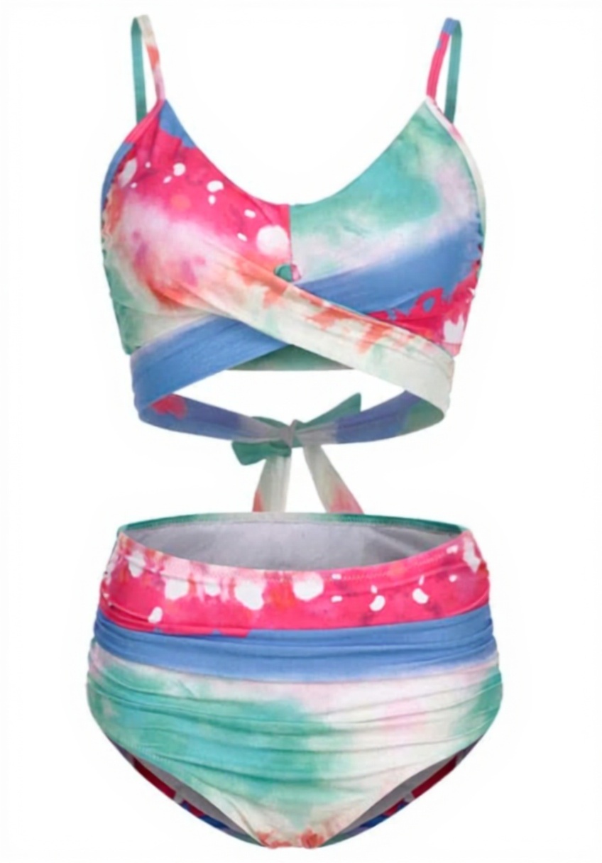 Ce bikini deux pièces pour femmes combine élégance et fonctionnalité avec son design tie dye et sa coupe bandage ajustable. Fabriqué en matériau élastique de haute qualité, il offre un confort optimal tout en épousant parfaitement la silhouette. Léger et résistant, il sèche rapidement et conserve sa forme après de multiples utilisations. Disponible en tailles S, M, L, XL et coloris Mauve, Jaune, Multicolore et Blanc, il convient à diverses morphologies.