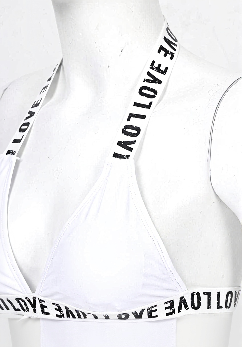 Ce maillot de bain deux pièces pour femmes combine design moderne et confort optimal. Le haut licou cou avec soutien-gorge intégré et le bas slip offrent un maintien ajustable grâce au système de bandage croix. L’impression lettre ajoute une touche d’originalité à cet ensemble. Fabriqué en matériau élastique léger de haute qualité, il épouse parfaitement la silhouette sans serrer, résiste à la déformation et sèche rapidement. Disponible en tailles S, M, L, XL et couleurs noir et blanc, il convient à diverses morphologies.