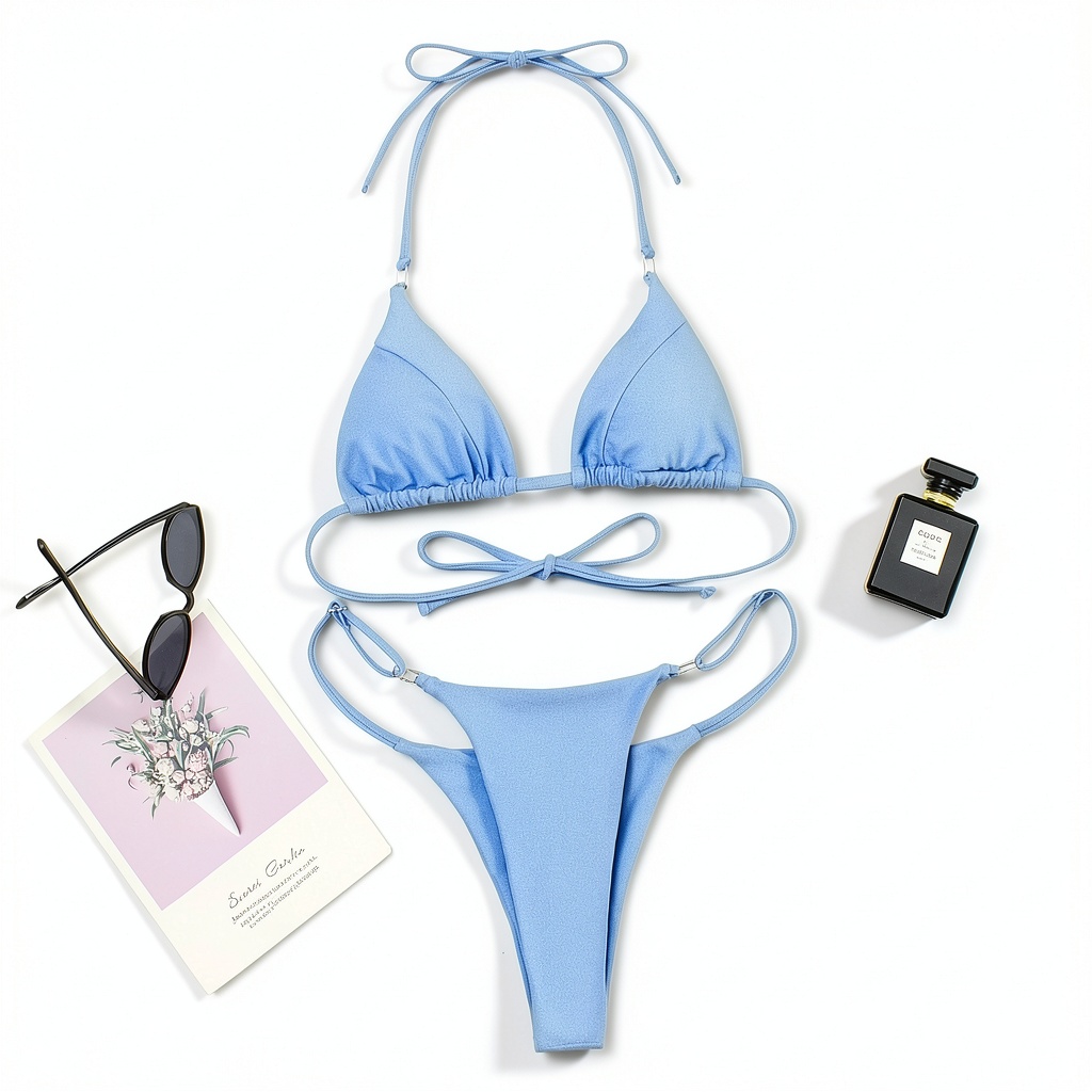 - Design string brésilien avec haut triangle et bas à coupe haute pour un style sexy et moderne.