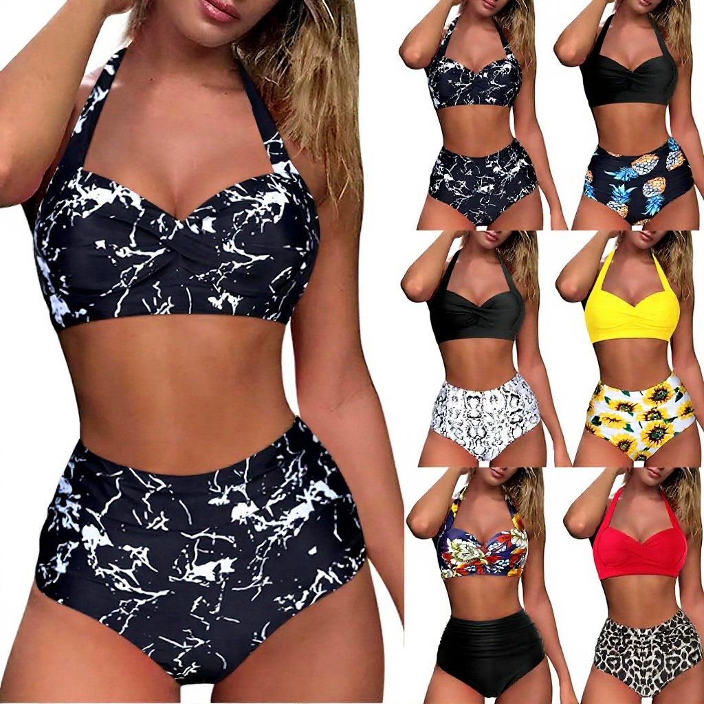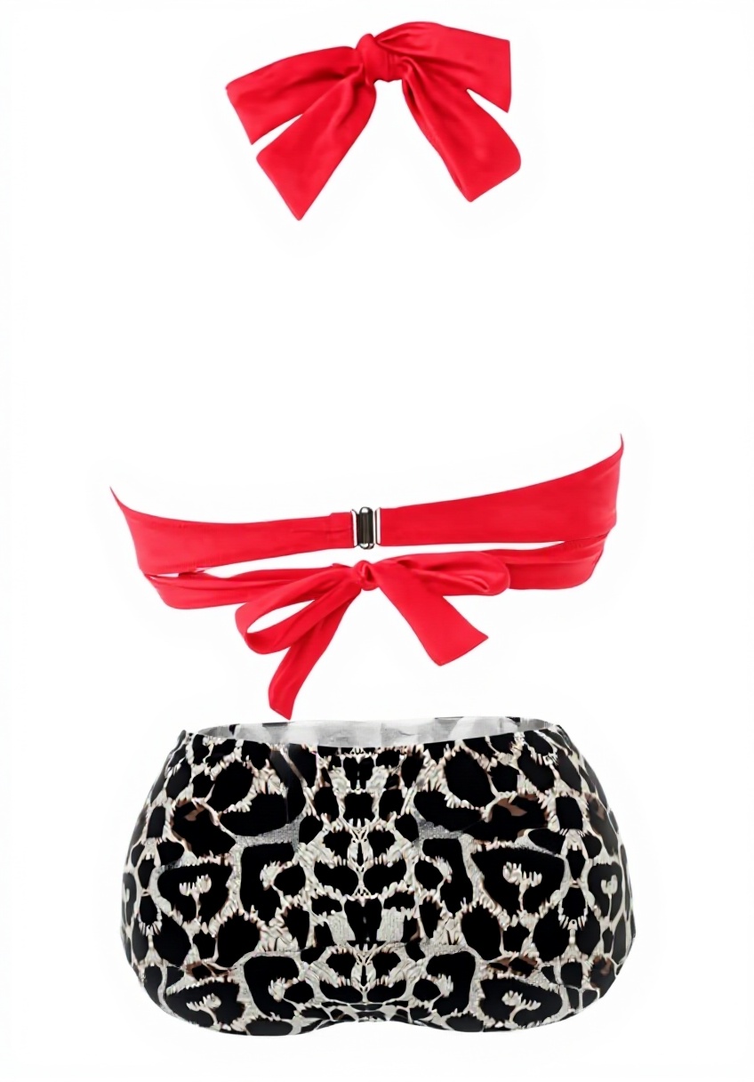 Ce bikini deux pièces pour femmes combine un design vintage raffiné avec un confort moderne. Fabriqué en nylon, polyester et élasthanne de haute qualité, il offre une élasticité optimale, un séchage rapide et une excellente résistance aux déformations. Le modèle présente une taille haute flatteuse, un licou ajustable et des volants délicats, le tout agrémenté d’un imprimé léopard intemporel. Disponible en tailles S à XXL et dans une palette de couleurs variées, il s’adapte à toutes les morphologies.